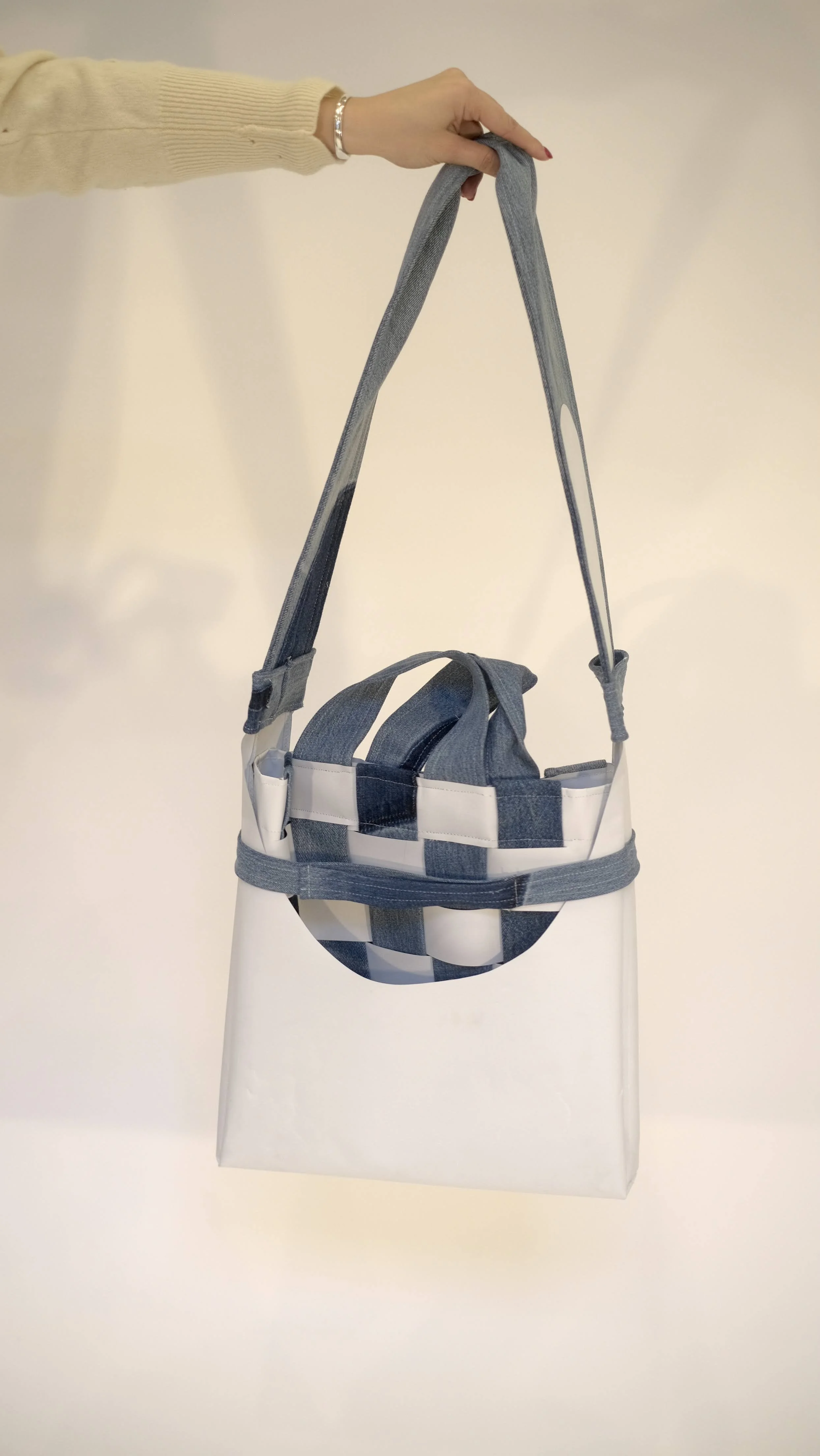 Material study and application. Exploring way’s to repurpose vinyl waste while utilising it’s material properties to the fullest. The NEST tote is a two in one tote bag and crossbody bag. The tote is interchangable to allow the user to have prepared bags that can be swapped out of the framework easily to suite different tasks.